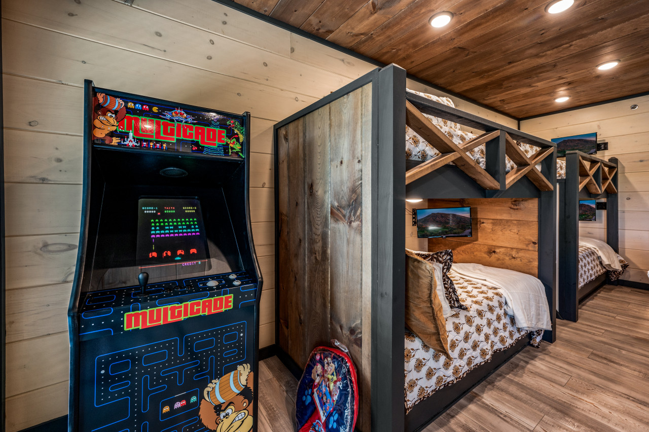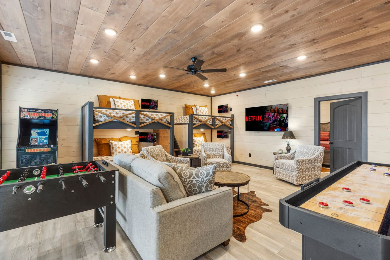 ✔ Game Room: Two sets of Twin-Over-Twin Bunk Beds, Sofa, Attached Full Bathroom with Stand Up Shower