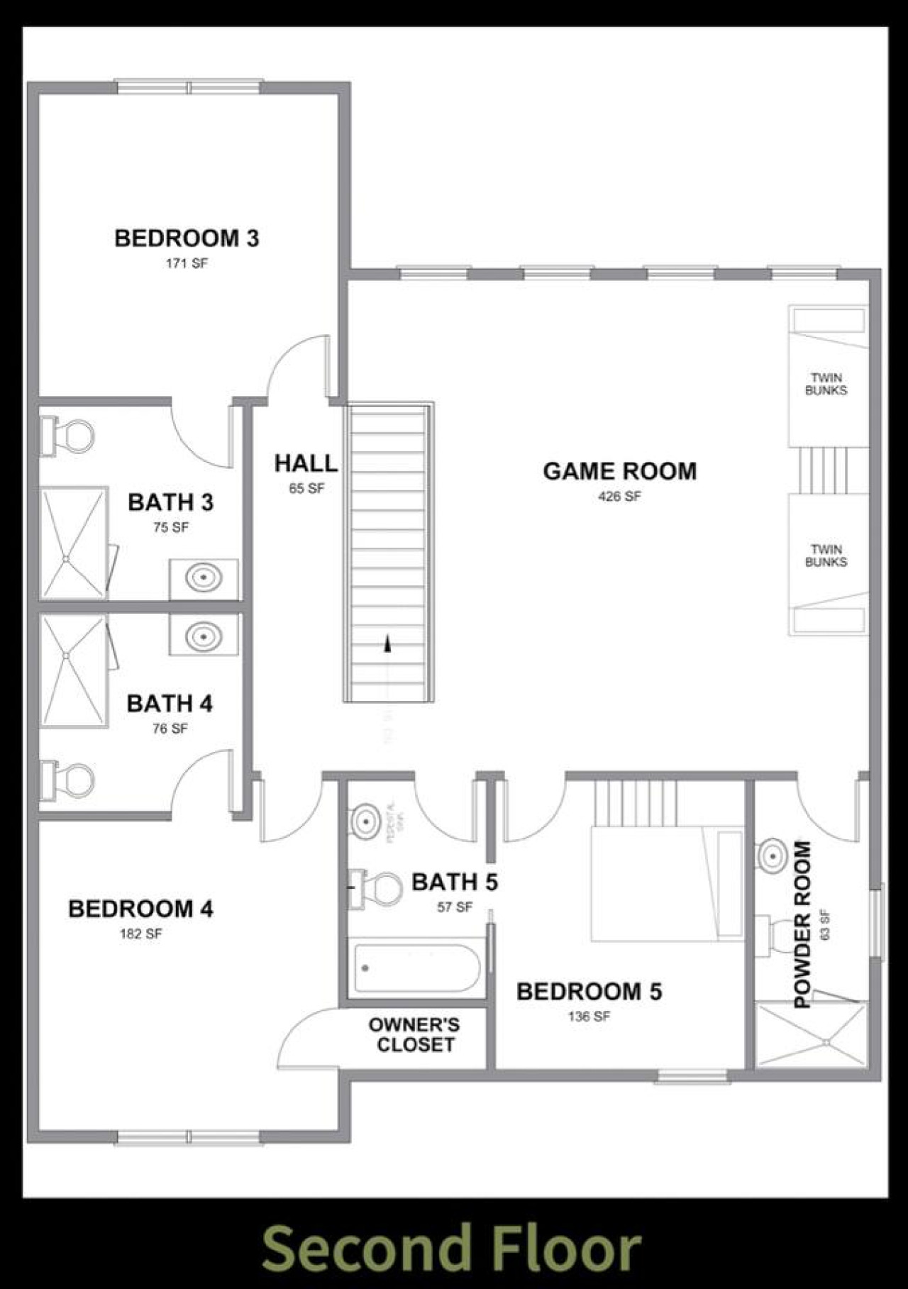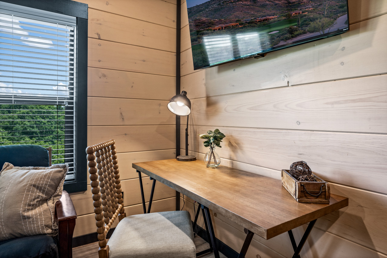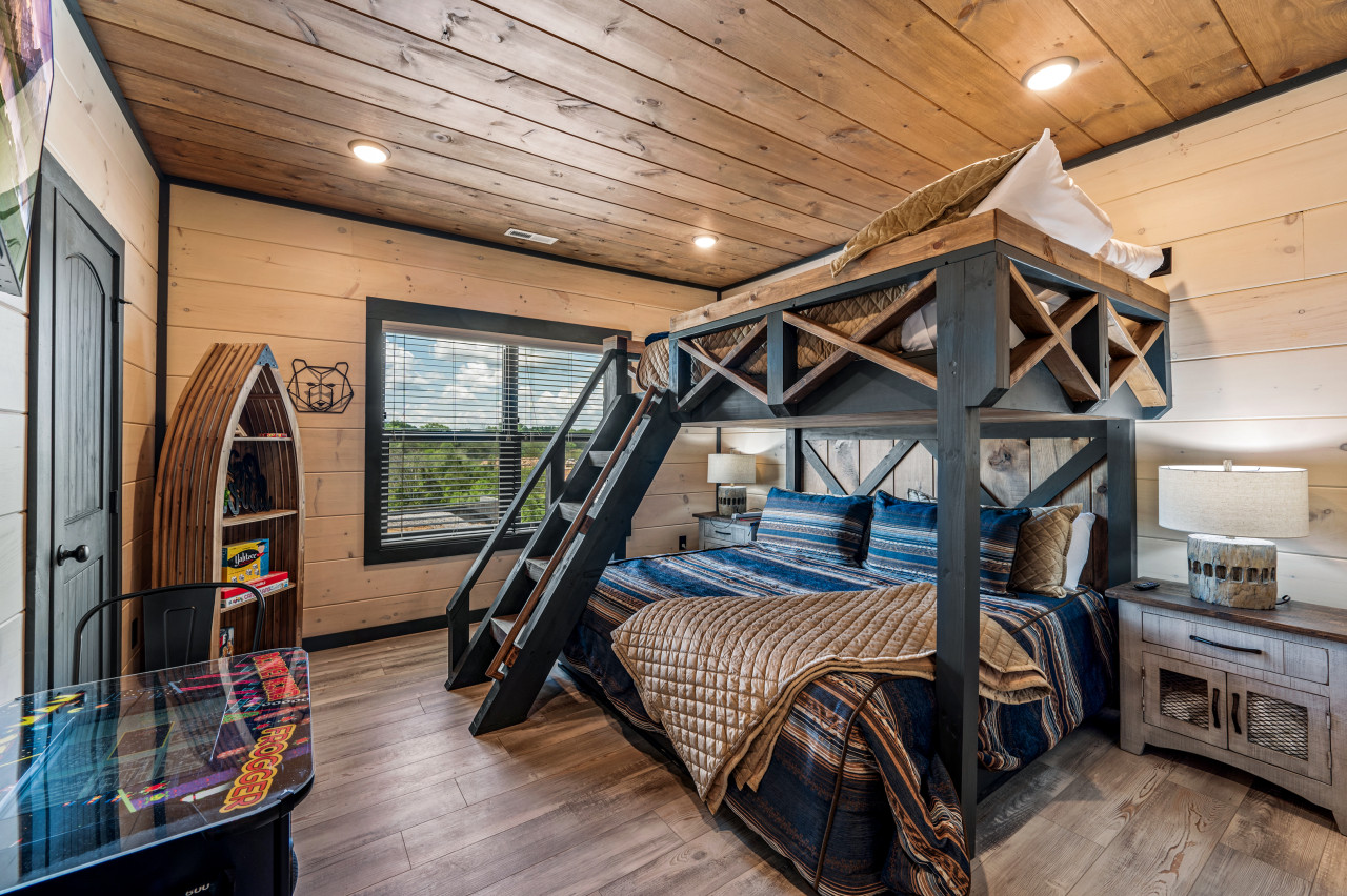 ✔ Bedroom #3 (Upper Level): Queen-over-Queen Bunk Bed, Flat-screen TV, Attached Full Bathroom with Stand Up Shower